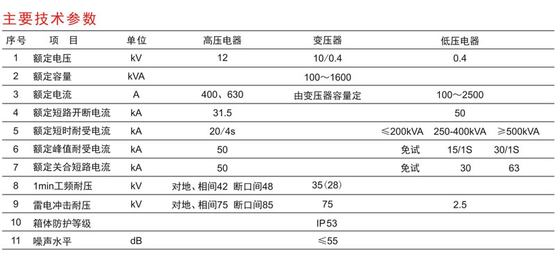 XBW-12/0.4高压/低压预装式变电站产品概述 XBW-12/0.4高压/低压预装式变电站是将高压柜、变压器、低压柜、计量单元及智能系统优化组合成的完整智能化配电成套装置。它除了再结构上吸取目前在国内流行的欧式、美式、国产箱变的优点外,并真正实现了配电自动化技术。可用于城市高层建筑、居民小区、市政设施、工厂、矿山、公路、码头、油田及临时施工用电等场所。 XBW-12/0.4符合GB/T17467-1998《高压/低压预装式变电站》、GB/T11022-1999《高压开关设备通用技术条件》等标准。 |
